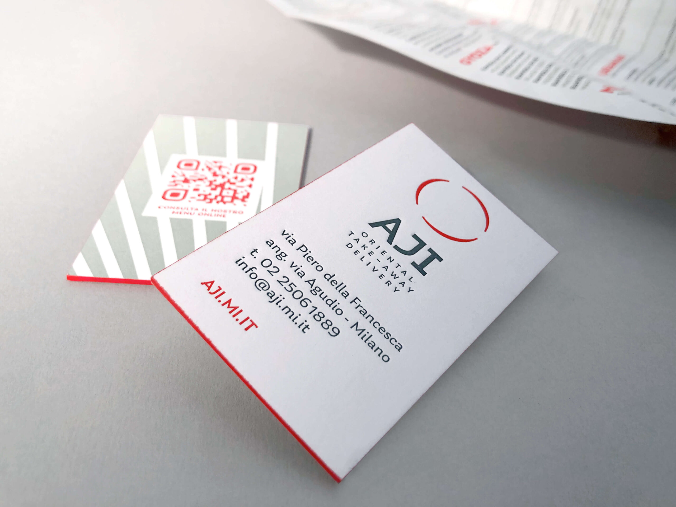 Aji, “gusto” in giapponese: un nuovo concetto di ristorazione che ha come focus il takeaway & delivery. Materie prime di eccellenza, chef di livello e cura del servizio sono i plus distintivi del brand, che anche nella visual identity ha voluto veicolare l’estrema cura del dettaglio che lo distingue. Essendo la cucina caratterizzata da una forte connotazione orientale, tutti i materiali sono stati rivestiti con una texture che prende ispirazione dal sol levante, ovviamente reinterpretato graficamente e cromaticamente in modo da diventare originale e fortemente riconoscibile, pur mantenendo uno stile raffinato e delicato che ben si sposa con il livello e la sofisticatezza dell’offerta e del target. A chiudere il cerchio, un sito internet premiato con una Honorable Mention dalla giuria di C2A Creative Communication Award 2019: aji.mi.it