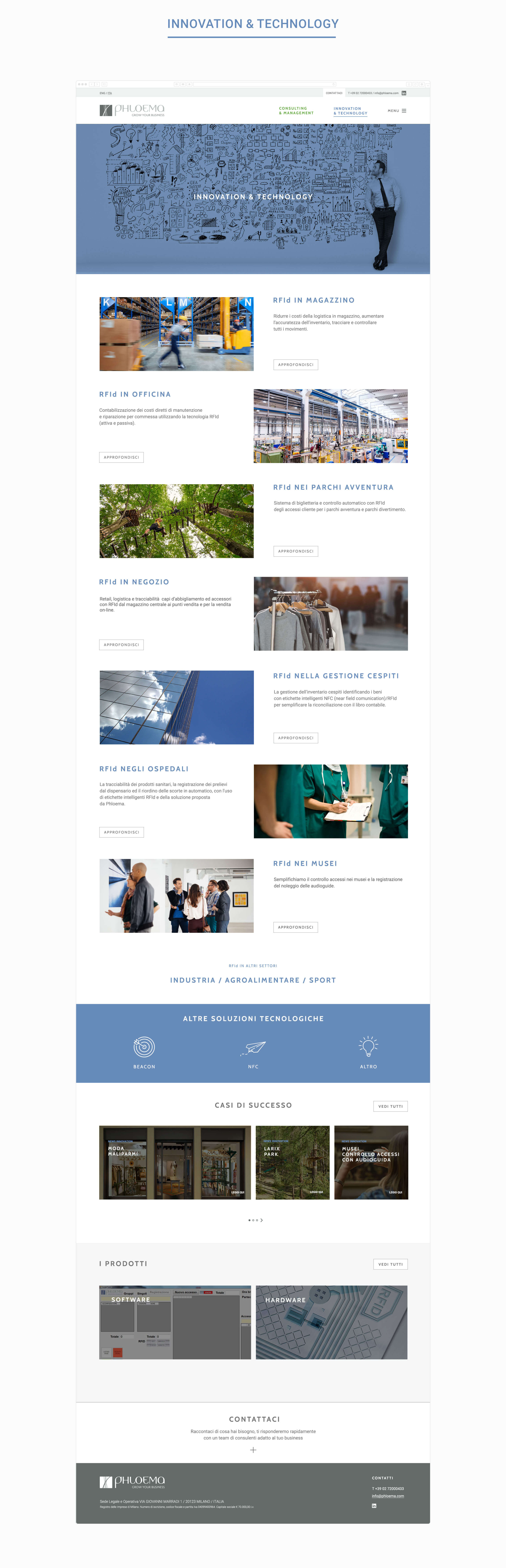Progetto di total rebrand (logo, immagine coordinata e sito internet) per Phloema, società specializzata in Consulting & Management, Innovation & Technology.